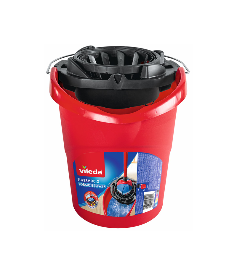 The SuperMocio Bucket with Torsion Wringer has a unique wringer that grabs the mop like a hand, closing all around it, twisting and squeezing it from all sides ensuring excess water is removed, with less effort.