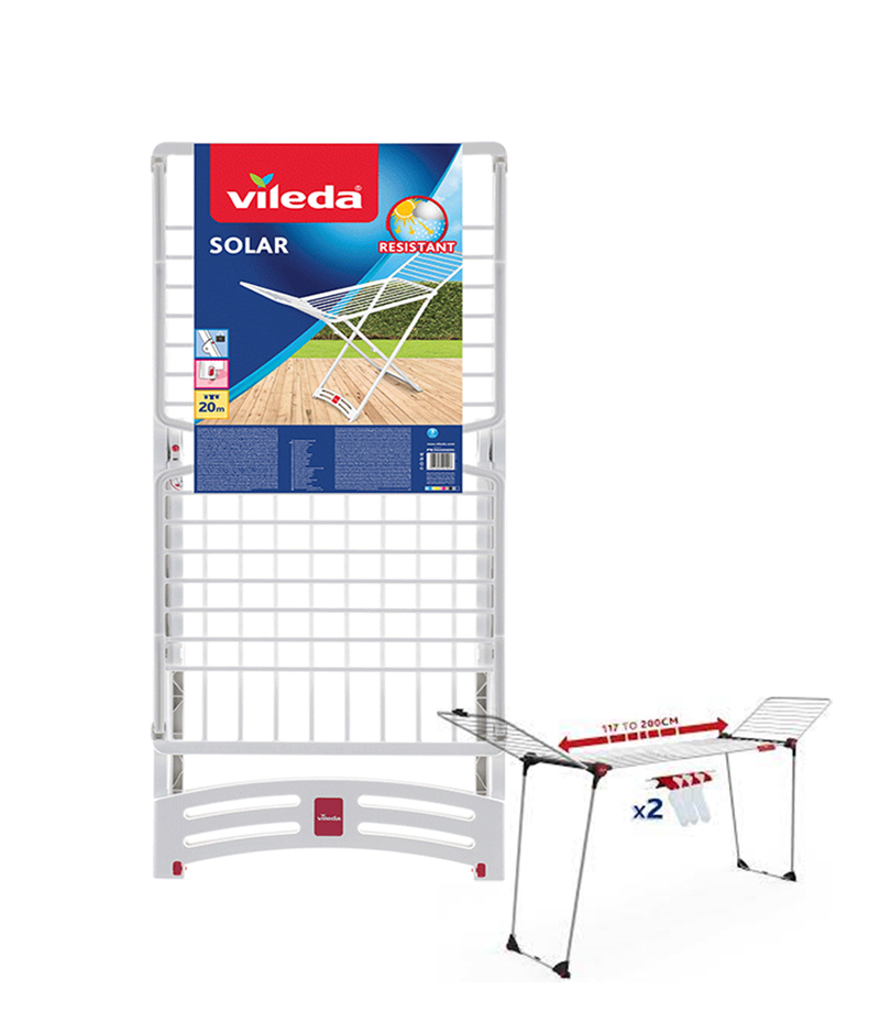 To use Vileda SolarĀ airer outside, the frame and wires are made of resin to ensure easy outdoor use. You can use your Vileda Solar airer whenever and wherever you want!