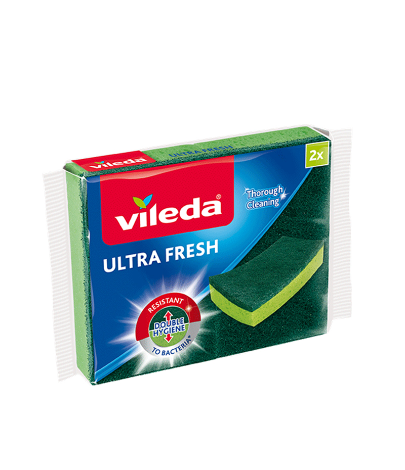 This Vileda sponge is the world’s only completely anti-bacterial sponge scourer! It is long lasting and designed to have a higher absorption capability. The Mid Foam Ultra Fresh Prevents bacteria growth on the abrasive to avoid bad smell.